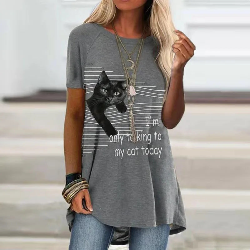 Front and center is the star of the show: a mischievous black cat peeking through playful graphic lines 🐈⬛✨, paired with the bold declaration “I’m only talking to my cat today.” It’s equal parts attitude, humor, and truth — a wearable mood for every cat‑devoted human.