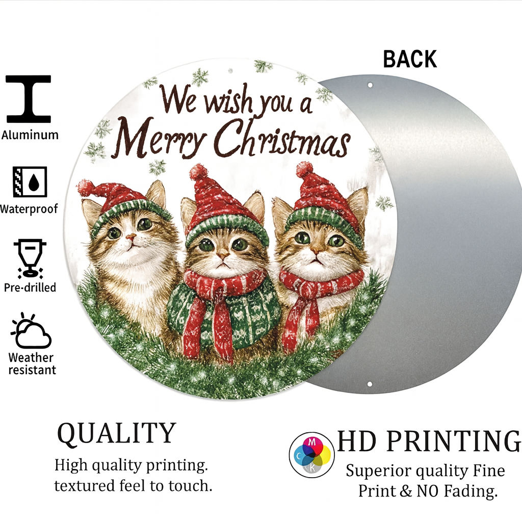 🎄A Purr-fect Holiday Delight - Three jolly cats, one festive mission: to bring cheer, charm, and a whole lot of whiskers to your holiday décor! The Meowy Christmas Aluminum Sign showcases our merry trio in cozy winter hats and scarves, nestled among snow-dusted pine branches with a heartfelt message: “We wish you a Merry Christmas.” Whether you're decking the halls or gifting giggles, this sign is a whisker-twitching way to celebrate the season.